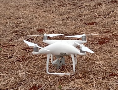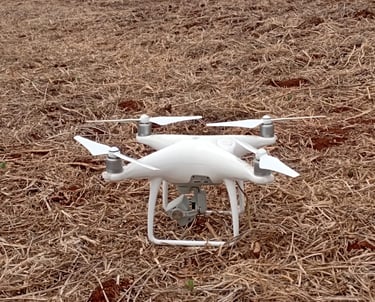 O drone realiza um levantamento para gerar imagens e informações relevantes para diversos projetos, como mapeamento de perímetro, NDVI, altimetria e etc.