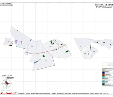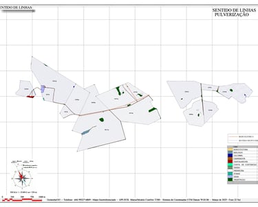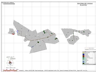 Linhas de plantio, pulverização, subsolagem e curvas de nível